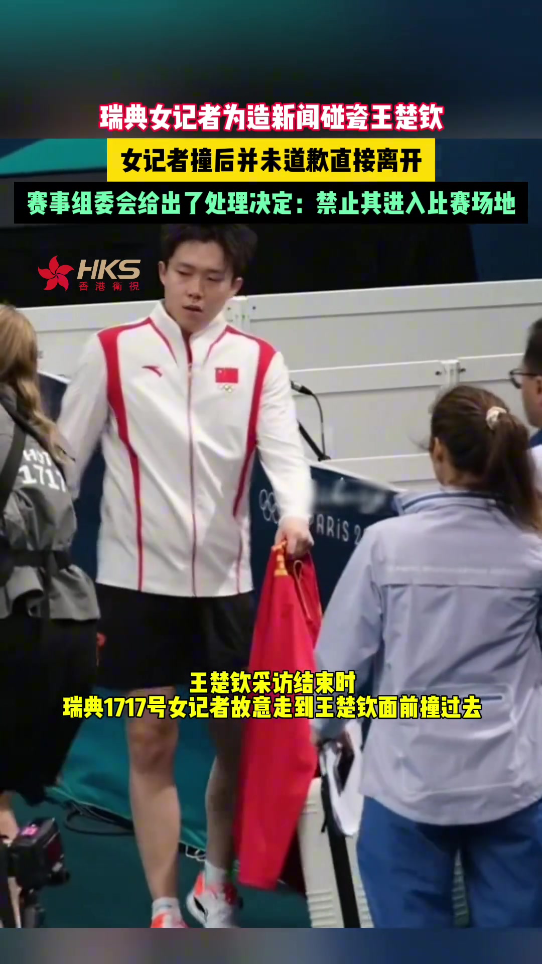 故意冲撞王楚钦的瑞典女记者已被处罚禁止其再进入奥运赛场报道