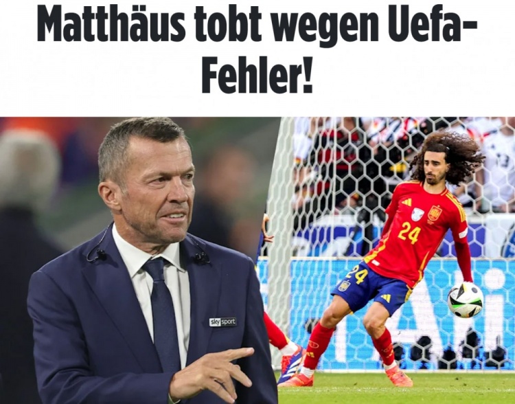 德国名宿马特乌斯在今日发声表达了自己的愤怒:“我在那一幕发生的第一时间就说‘点球!’然而,第二天有消息称,欧足联裁判主席指示,如果手臂处于自然松弛状态,就不应该判罚点球。我当时也对此表示理解。”