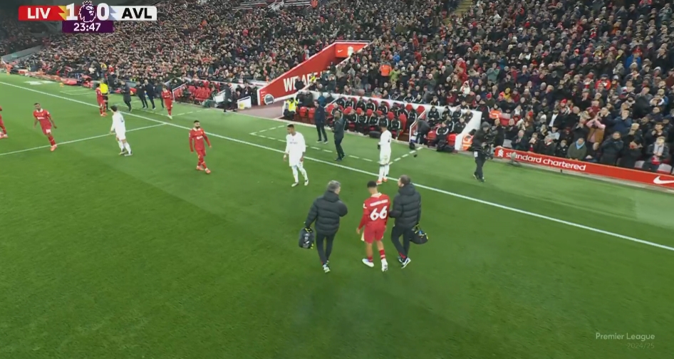 不妙!阿诺德第24分钟伤退,布拉德利登场