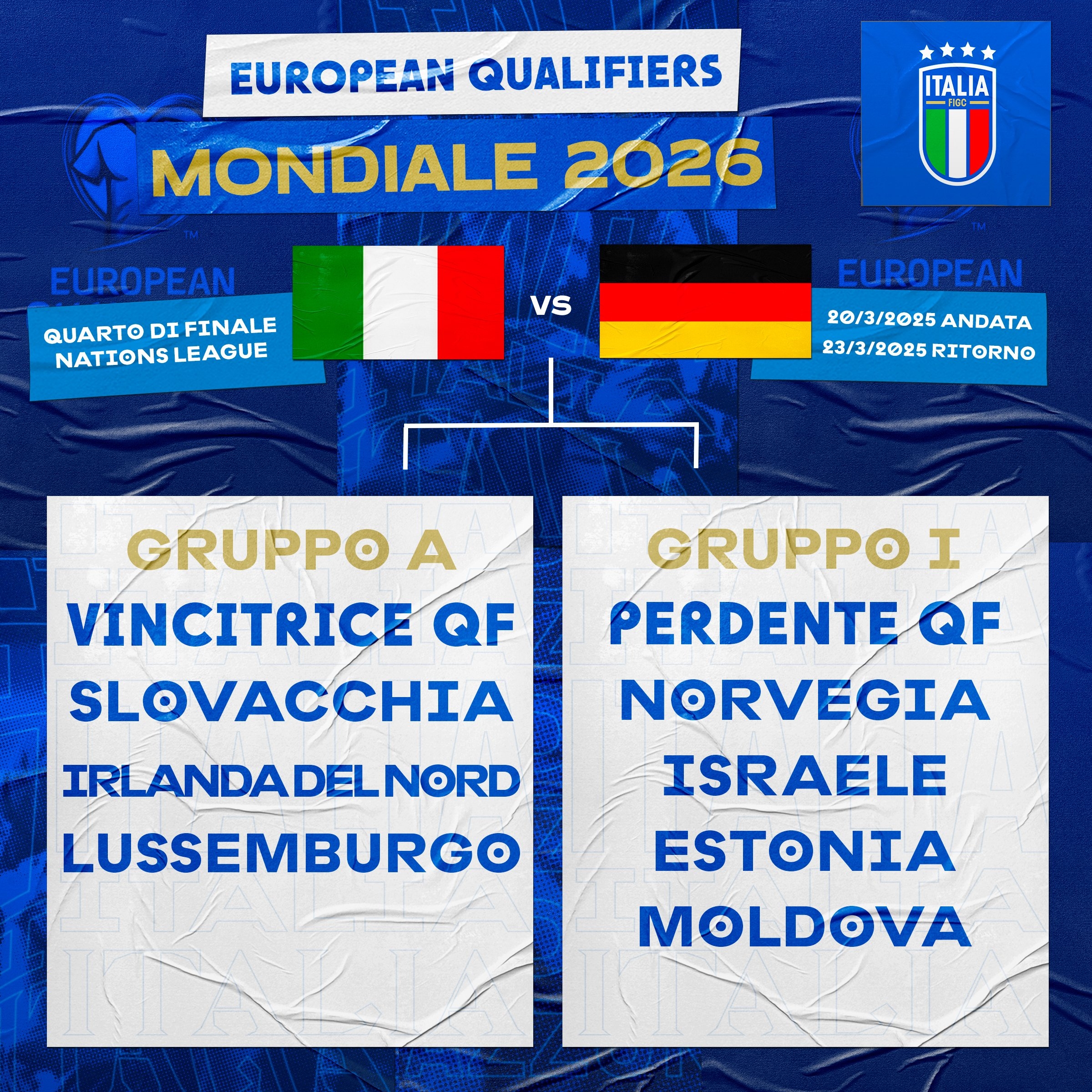 本次世预赛,意大利需要在与德国的欧国联1/4决赛完成后才能分组落位↓