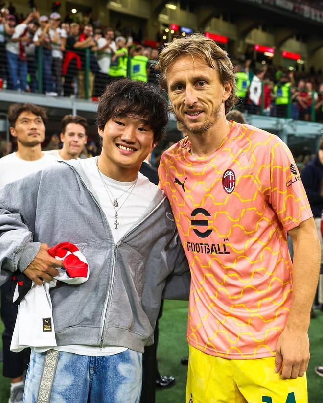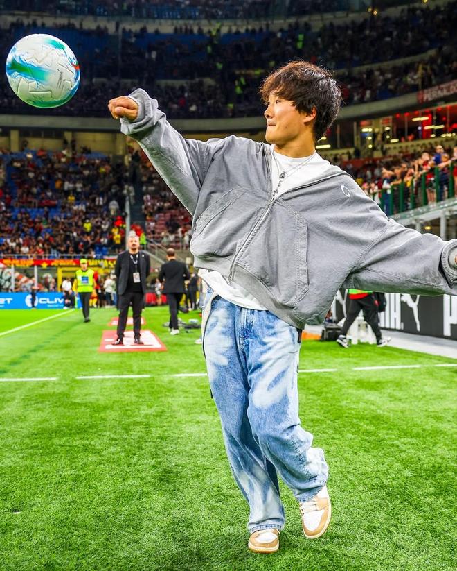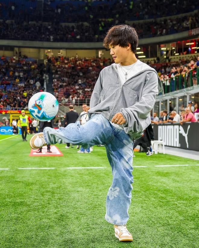 F1车手角田裕毅现身圣西罗:与魔笛合影,并在场边秀脚法