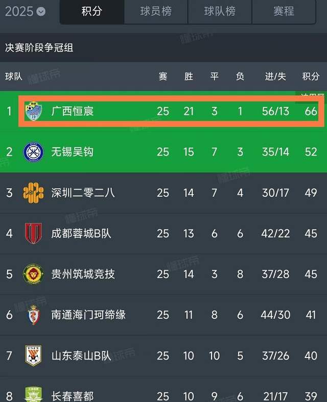 第一个,广西恒宸的崛起速度相当惊人。俱乐部2021年才成立,仅仅4年就完成了从无到有、从中乙到中甲的跨越。本赛季25轮战罢,他们21胜3平1负,提前锁定中甲资格,领先优势巨大,几乎没有给竞争对手机会。要知道,现在的职业联赛几乎被国企俱乐部垄断,这样一家纯民企地产背景的球队能断档式升级,本身就是一个奇迹。