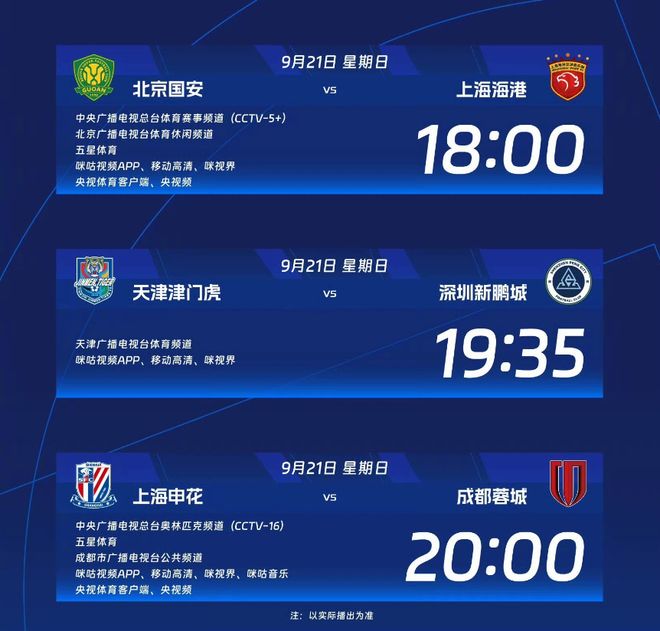 根据赛程,上海申花主场迎战成都蓉城的比赛,将在北京时间9月21日晚上8点开打,央视安排CCTV16频道现场直播。