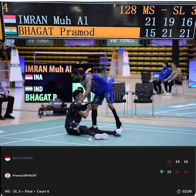 站立3级男单决赛则几乎可以用“惨烈”来形容,印度的巴格特和印尼的伊姆兰这两位选手竟然进行了一场三局合计128分钟的比赛,最长的一个回合持续了整整6分钟,是一场名副其实的马拉松式比赛。