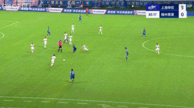 第76分钟,于汉超换下阿苏埃。第77分钟,杨泽翔与于汉超二过一配合,刚刚替补登场的于汉超一搓,杨泽翔直接推射破门,申花5比0领先梅州客家。