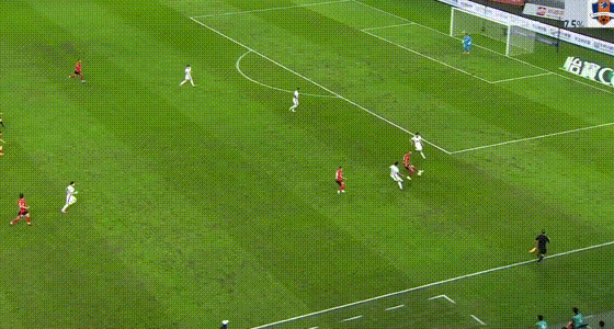 第45+3分钟,罗慕洛拿球连续突破冲出人群,可惜皮球被郭全博先控制住。