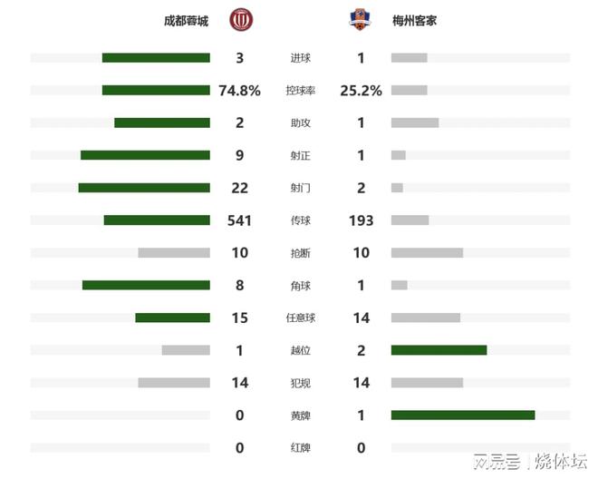 3、成都蓉城击败梅州,改写历史交锋战绩为9胜2平1负,同时对梅州客家5连胜。