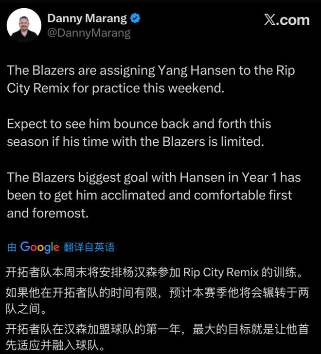 - NBA | 开拓者宣布!再见了,杨瀚森!NBA生涯第一次下放