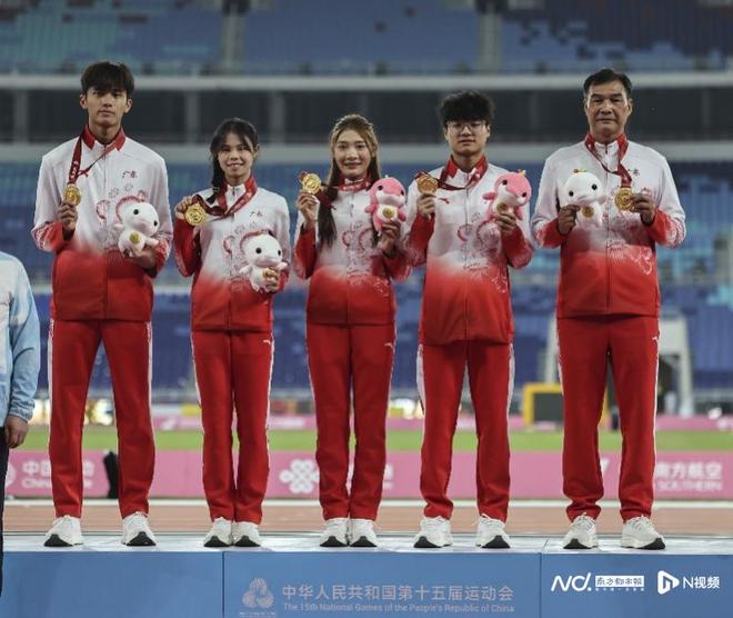 广东田径首金喜悦再来一次!4400米混合接力颁奖