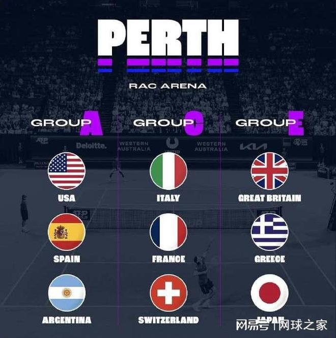 我们再来关注2026赛季的联合杯。北京时间昨天,这项混合团体赛的分组抽签结果出炉。珀斯赛区的三个小组是A组:美国、西班牙、阿根廷;C组:意大利、法国、瑞士;E组:英国、希腊、日本。