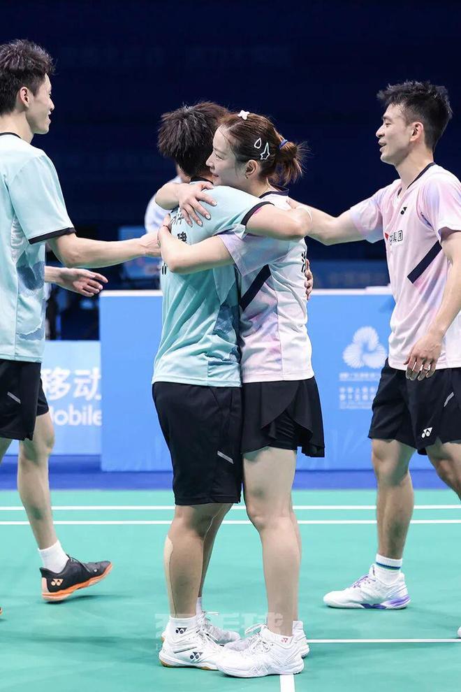 十五运会的羽毛球赛场上,总能看到同一个画面:比赛刚结束,还未来得及喘口气,选手们便自发地聚在一起,用合影记录这段走过的旅程。而在这些合影里,黄东萍出现的频率最高。不仅出于她的双线作战,更是因为她和他们之间,有着超越胜负的感情连结。
