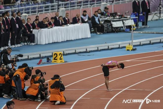 11月20日晚,在广东奥体中心近5万观众的注视下,苏炳添在男子4×100米接力决赛率领广东队拿到第四名。赛后他当场脱下了跑鞋,宣布正式“挂靴”退役,并在混采区接受记者采访时深情回顾了自己的职业生涯,寄语年轻人坚持梦想,珍惜时光。