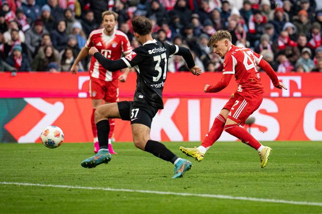 首发阵容方面,拜仁依然4231阵型出战,11人总身价达到5.28亿欧,是弗赖堡的5倍。凯恩顶在锋线,17岁的卡尔、奥利塞和迪亚斯紧随其后,帕夫洛维奇和格雷茨卡搭档后腰,后卫线依次为斯塔尼希奇、于帕梅卡诺、塔和比朔夫,门将位置依然是诺伊尔。