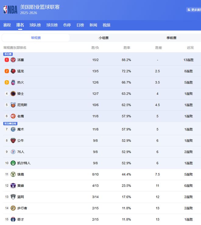 东部最新排名: