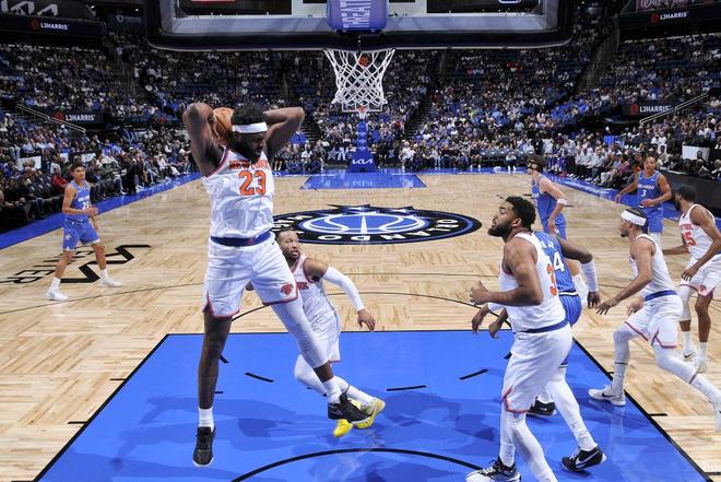 比如纽约尼克斯队在米切尔·罗宾逊上场的时间里,便成功复刻了火箭队的成功。本赛季,米切尔·罗宾逊一共出场9场比赛,进攻篮板率高达29.3%,而他抢到前场篮板并非第一时间选择攻筐,而是将球传到外线。据统计,本赛季至今,罗宾逊抢到进攻篮板后将球传出,尼克斯队有74%的概率获得三分球机会。