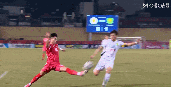 易边再战,第50分钟国安后防注意力不集中,河内公安前场界外球快发,阮庭北突入禁区后传中造险,江文豪抢先一步解围的同时被对手铲倒。