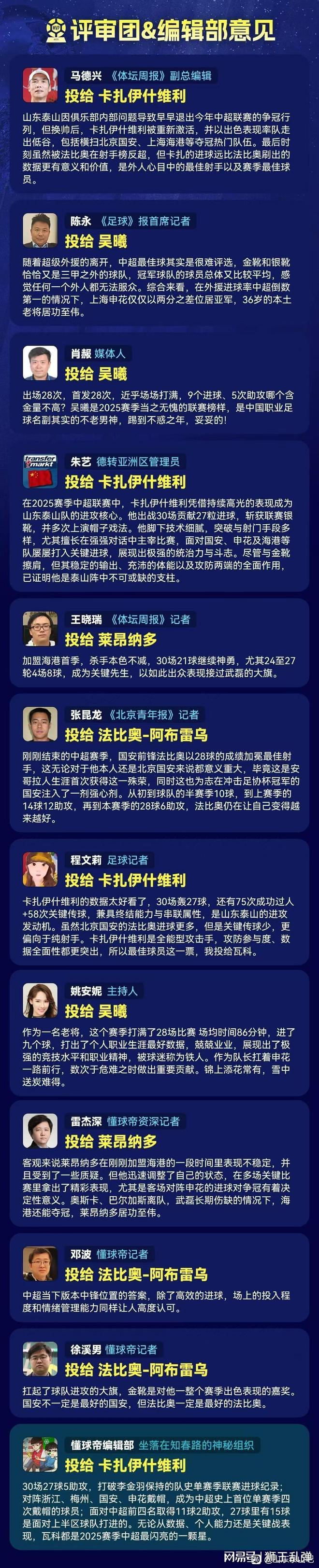 陈永等三位媒体人的选票,更多考虑的对老将坚守的致敬,却并未考虑到一些实际问题,尤其是泰山球迷口中的“永哥”,此番没有把票投给瓦科却投给了吴曦,这是冒着得罪粉丝而才有的冒险动作。而中国足协最终候选名单的取舍,却是联赛发展的现实选择。吴曦或许错失了候选资格,但36岁仍能保持如此竞技状态,已然成为中超赛场上“无冕的实力派”。这场争议更值得深思的是:如何让中场球员的隐性贡献被更好地看见,如何在联赛导向与个体价值之间找到更优平衡,这或许才是此次落选事件留给中超评选体系的重要命题。