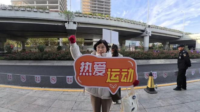 在徐汇滨江的跑道边,禁毒社工和市民一起为参赛选手加油!