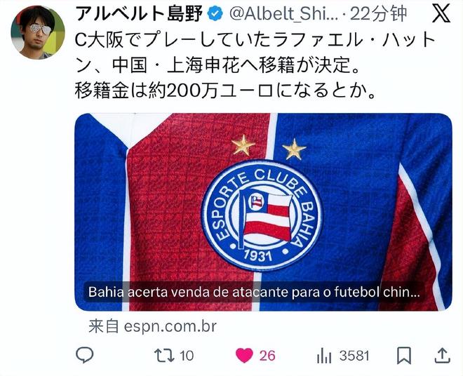 北京时间12月16日,中超冬窗转会市场刚传出重磅消息,巴西ESPN确认,上海申花已与巴西前锋拉斐尔·拉唐达成加盟协议,转会费仅200万欧元。这位上赛季租借效力于大阪樱花的30岁前锋,交出了44场23球4助攻的华丽数据,如今德转身价300万欧元,相当于“折价”加盟。消息一出,申花球迷既兴奋又忐忑:在锋线疲软一整个赛季后,这波操作难道是精准捡漏?要知道,200万欧元在如今的中超已是顶级引援投入,拉唐真能解决申花的“锋无力”顽疾吗?