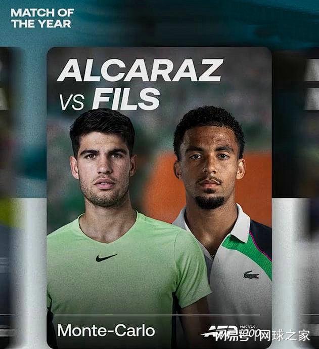 我们再来关注ATP年度评选。北京时间今晨,ATP官宣,在蒙特卡洛大师赛上,西班牙红星阿尔卡拉斯与法国新星菲斯的那场八强战对决当选本赛季巡回赛年度最佳比赛。