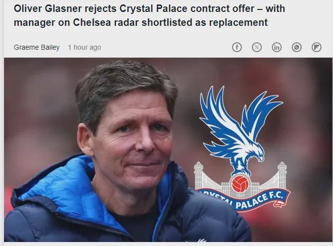自上任以来,格拉斯纳已将水晶宫打造成欧战资格竞争者,并率队夺得足总杯冠军。其出色表现吸引了欧洲多家俱乐部持续关注。尽管水晶宫方面仍希望格拉斯纳回心转意,但TEAMtalk确认,俱乐部高层已在研究潜在替代方案,并对候选人展开背景调查。在水晶宫看好的新帅人选中,包括斯特拉斯堡主帅利亚姆·罗塞尼尔。这位英格兰少帅曾被视为马雷斯卡在切尔西的接班人之一。