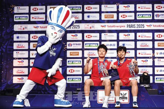 刘圣书:2025年我和谭宁总体是往上走的,年初遇到了瓶颈期,通过亚锦赛、苏迪曼杯有了很大的转变,这种状态保持到了巴黎世锦赛,那也是2025年我们最大的目标之一。时隔一年,又回到巴黎拉夏贝尔门体育馆,从2024年的银牌到2025年变为金牌,这是对我们这一年的最大肯定。