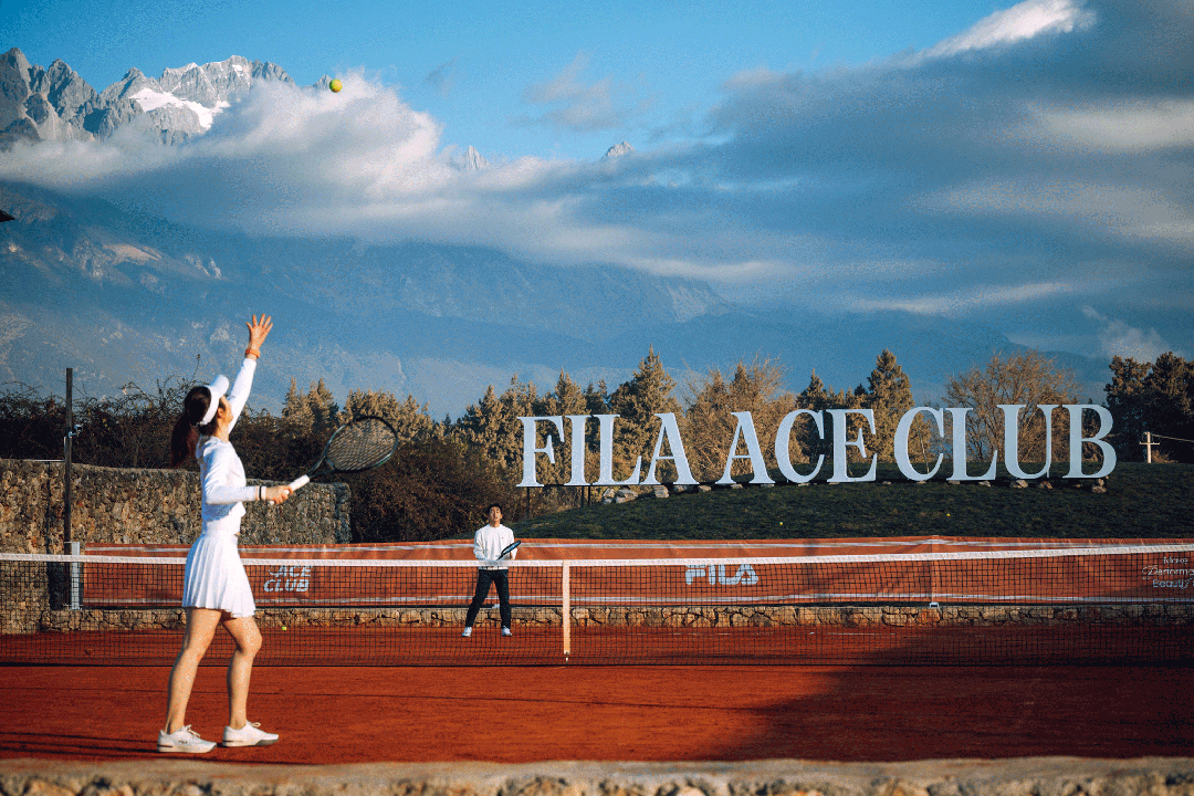 而遍布全国的FILA ACE Club社群,则通过组织各类“风格网球局”活动,将线上热度延伸至线下真实体验中。一个典型的例子是,近期在云南丽江玉龙雪山脚下的“风格网球局”,FILA打造的红土球场与远方的雪山呼应,让活动的视觉效果变得更加震撼。